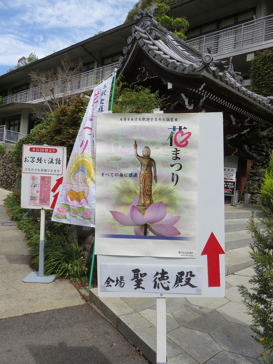 このところ続いた雨模様の日から一転した春らしい陽気に恵まれた「花まつり」となりました。