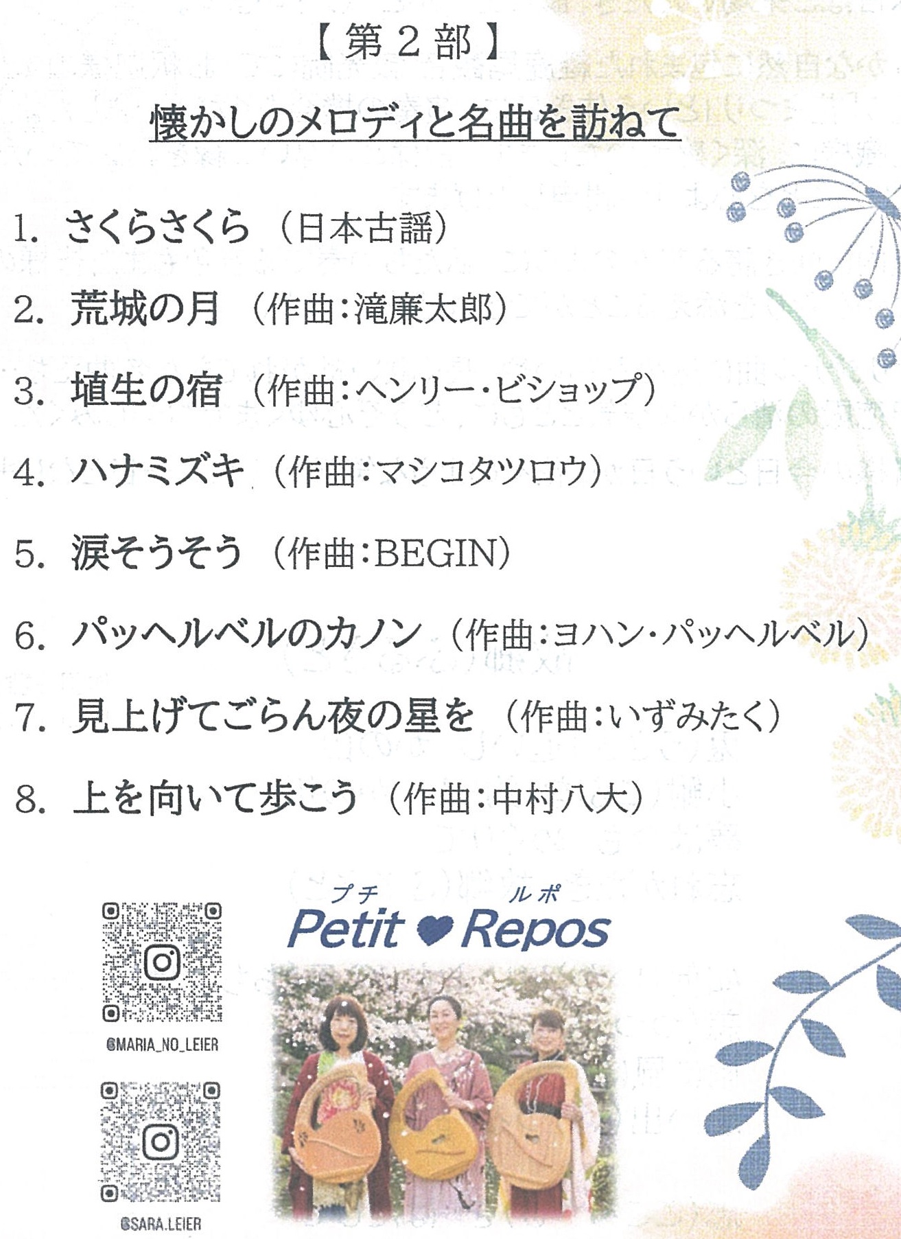 「Petit Repos(プチ ルポ)」ご3方の3種の竪琴(ライアー)の演奏でした。